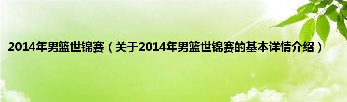 本文关于2014年男篮世锦赛的基本详情介绍就讲解完毕,希望对大家有所帮助。