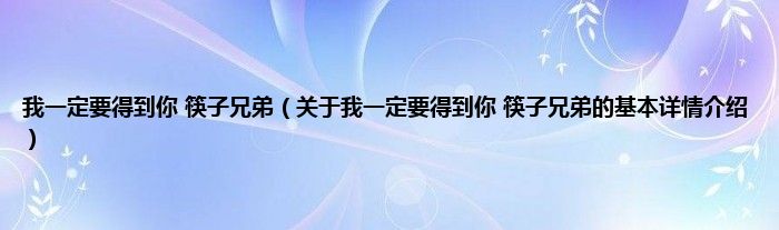 本文关于我一定要得到你 筷子兄弟的基本详情介绍就讲解完毕,希望对大家有所帮助。