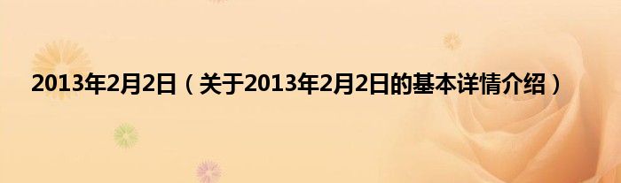 本文关于2013年2月2日的基本详情介绍就讲解完毕,希望对大家有所帮助。