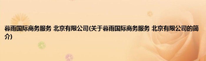 本文关于暮雨国际商务服务 北京有限公司的简介就讲解完毕,希望对大家有所帮助。