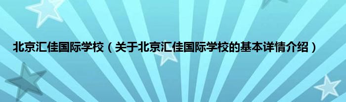 本文关于北京汇佳国际学校的基本详情介绍就讲解完毕,希望对大家有所帮助。