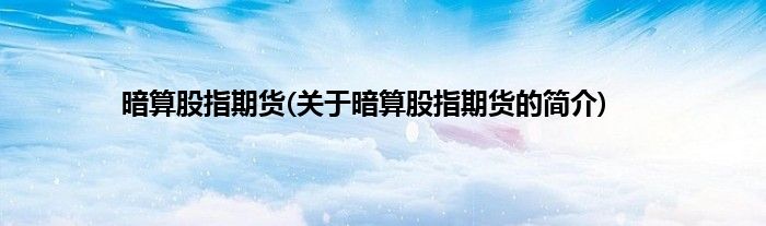 大家好,暗算股指期货,关于暗算股指期货的简介很多人还不知道,现在让我们一起来看看吧!