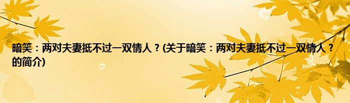 本文关于暗笑:两对夫妻抵不过一双情人?的简介就讲解完毕,希望对大家有所帮助。