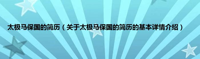 本文关于太极马保国的简历的基本详情介绍就讲解完毕,希望对大家有所帮助。