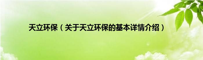 本文关于天立环保的基本详情介绍就讲解完毕,希望对大家有所帮助。