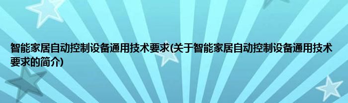 本文关于智能家居自动控制设备通用技术要求的简介就讲解完毕,希望对大家有所帮助。