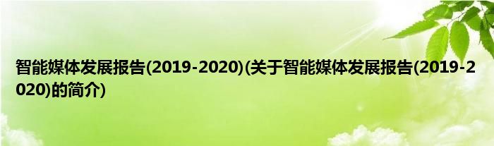 本文关于智能媒体发展报告(2019-2020)的简介就讲解完毕,希望对大家有所帮助。