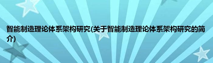 本文关于智能制造理论体系架构研究的简介就讲解完毕,希望对大家有所帮助。