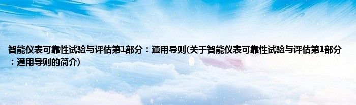 大家好,智能仪表可靠性试验与评估第1部分:通用导则,关于智能仪表可靠性试验与评估第1部分:通用导则的简介很多人还不知道,现在让我们一起来看看吧!