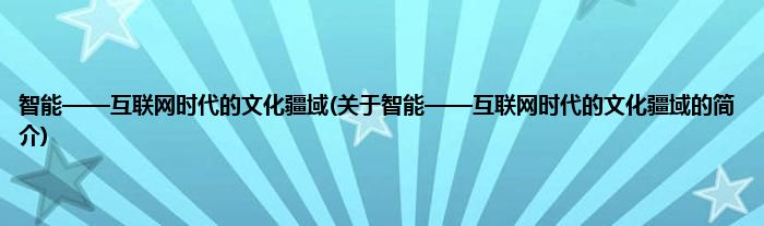 本文关于智能——互联网时代的文化疆域的简介就讲解完毕,希望对大家有所帮助。