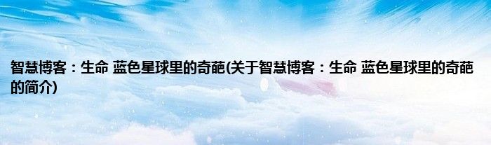 智慧博客:生命蓝色星球里的奇葩(关于智慧博客:生命蓝色星球里的奇葩的简介)