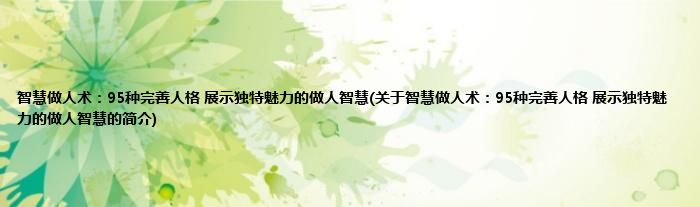 本文关于智慧做人术:95种完善人格,展示独特魅力的做人智慧的简介就讲解完毕,希望对大家有所帮助。