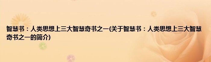 本文关于智慧书:人类思想上三大智慧奇书之一的简介就讲解完毕,希望对大家有所帮助。