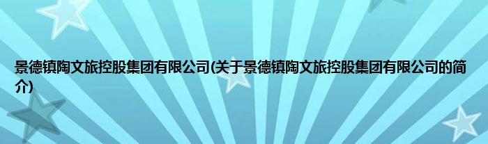 大家好,景德镇陶文旅控股集团有限公司,关于景德镇陶文旅控股集团有限公司的简介很多人还不知道,现在让我们一起来看看吧!