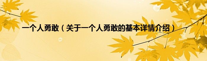 一个人勇敢(关于一个人勇敢的基本详情介绍)