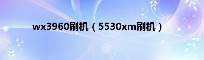 大家好,小问来为大家解答以上问题。wx3960刷机,5530xm刷机这个很多人还不知道,现在让我们一起来看看吧!