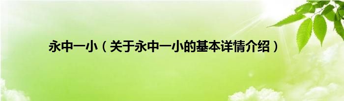 本文关于永中一小的基本详情介绍就讲解完毕,希望对大家有所帮助。