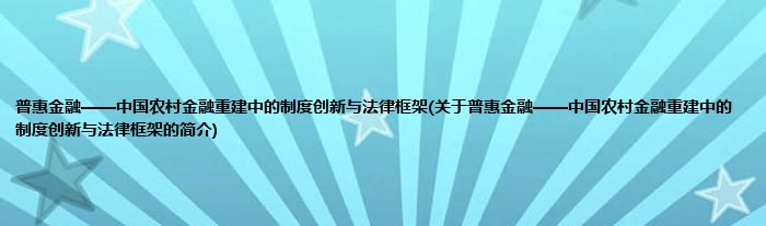 本文关于普惠金融——中国农村金融重建中的制度创新与法律框架的简介就讲解完毕,希望对大家有所帮助。