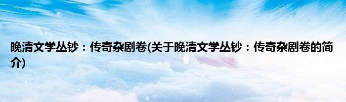 本文关于晚清文学丛钞:传奇杂剧卷的简介就讲解完毕,希望对大家有所帮助。
