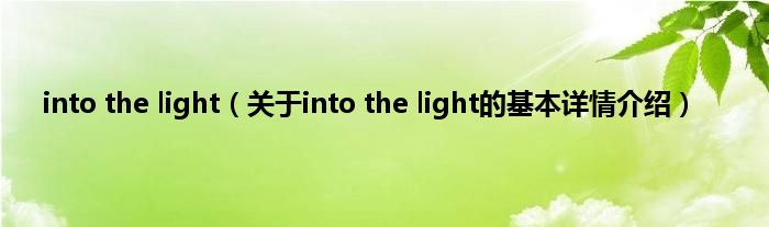 本文关于into the light的基本详情介绍就讲解完毕,希望对大家有所帮助。