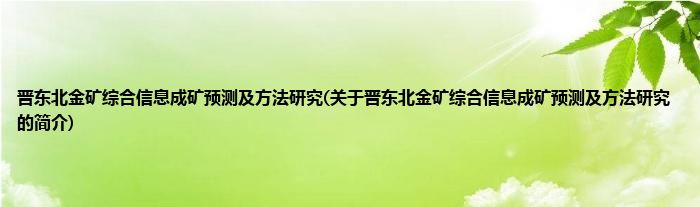本文关于晋东北金矿综合信息成矿预测及方法研究的简介就讲解完毕,希望对大家有所帮助。