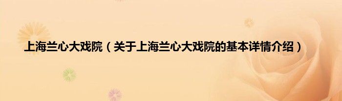 本文关于上海兰心大戏院的基本详情介绍就讲解完毕,希望对大家有所帮助。