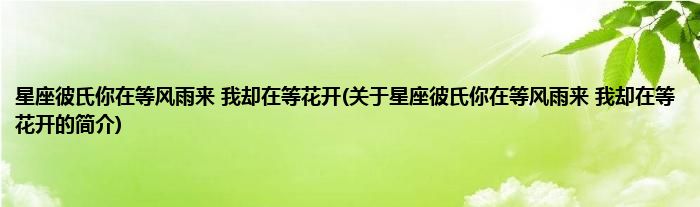 大家好,星座彼氏你在等风雨来,我却在等花开,关于星座彼氏你在等风雨来,我却在等花开的简介很多人还不知道,现在让我们一起来看看吧!