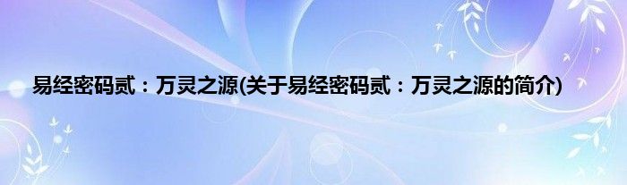 本文关于易经密码贰:万灵之源的简介就讲解完毕,希望对大家有所帮助。