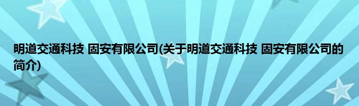明道交通科技 固安有限公司(关于明道交通科技 固安有限公司的简介)