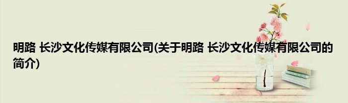 明路长沙文化传媒有限公司(关于明路长沙文化传媒有限公司的简介)