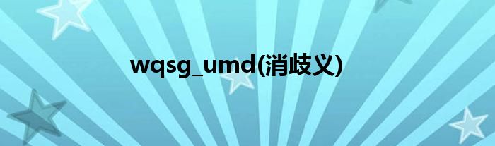 大家好,小问来为大家解答以上问题。wqsg_umd(消歧义)这个很多人还不知道,现在让我们一起来看看吧!