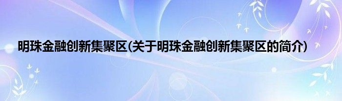 大家好,明珠金融创新集聚区,关于明珠金融创新集聚区的简介很多人还不知道,现在让我们一起来看看吧!