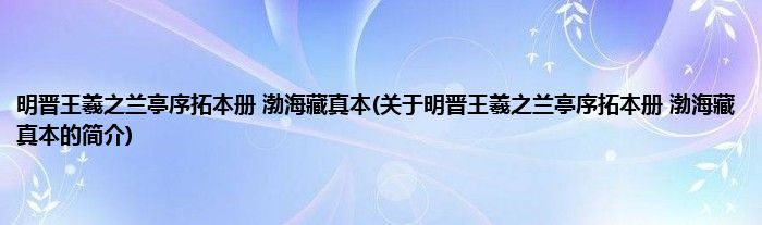 本文关于明晋王羲之兰亭序拓本册 渤海藏真本的简介就讲解完毕,希望对大家有所帮助。