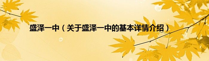 本文关于盛泽一中的基本详情介绍就讲解完毕,希望对大家有所帮助。