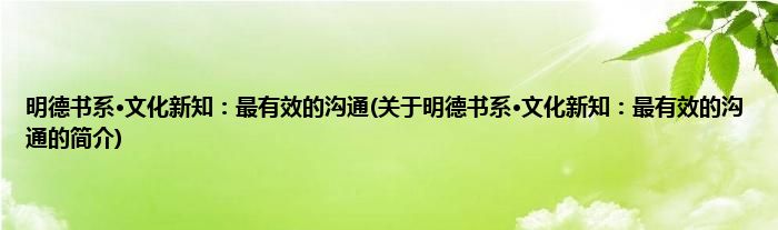 本文关于明德书系·文化新知:最有效的沟通的简介就讲解完毕,希望对大家有所帮助。