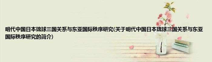 大家好,明代中国日本琉球三国关系与东亚国际秩序研究,关于明代中国日本琉球三国关系与东亚国际秩序研究的简介很多人还不知道,现在让我们一起来看看吧!