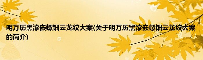 1、 明万历黑漆嵌螺钿云龙纹大案是明万历年间的一件漆器。