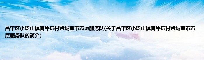 本文关于昌平区小汤山镇官牛坊村管城理市志愿服务队的简介就讲解完毕,希望对大家有所帮助。
