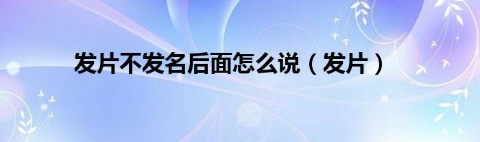 以上就是【发片不发名后面怎么说,发片】相关内容。