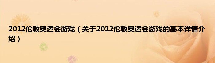 本文关于2012伦敦奥运会游戏的基本详情介绍就讲解完毕,希望对大家有所帮助。