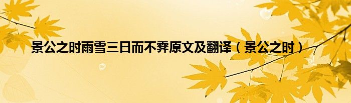 大家好,小问来为大家解答以上问题。景公之时雨雪三日而不霁原文及翻译,景公之时这个很多人还不知道,现在让我们一起来看看吧!