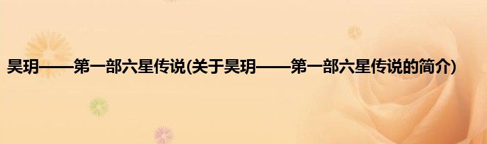 昊玥——第一部六星传说(关于昊玥——第一部六星传说的简介)