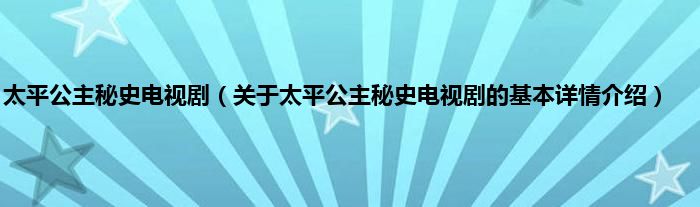 本文关于太平公主秘史电视剧的基本详情介绍就讲解完毕,希望对大家有所帮助。