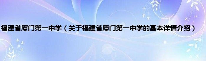 本文关于福建省厦门第一中学的基本详情介绍就讲解完毕,希望对大家有所帮助。
