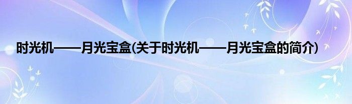 本文关于时光机——月光宝盒的简介就讲解完毕,希望对大家有所帮助。