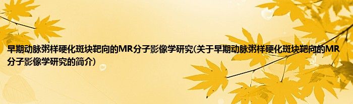 大家好,早期动脉粥样硬化斑块靶向的MR分子影像学研究,关于早期动脉粥样硬化斑块靶向的MR分子影像学研究的简介很多人还不知道,现在让我们一起来看看吧!