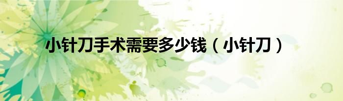以上就是【小针刀手术需要多少钱,小针刀】相关内容。
