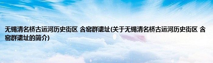 本文关于无锡清名桥古运河历史街区 含窑群遗址的简介就讲解完毕,希望对大家有所帮助。