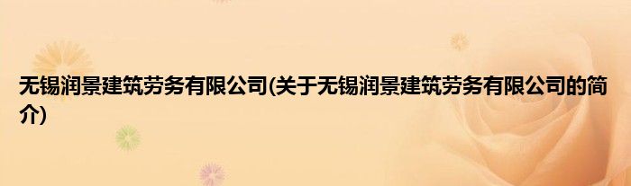 本文关于无锡润景建筑劳务有限公司的简介就讲解完毕,希望对大家有所帮助。
