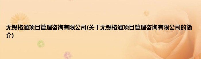 本文关于无锡格通项目管理咨询有限公司的简介就讲解完毕,希望对大家有所帮助。